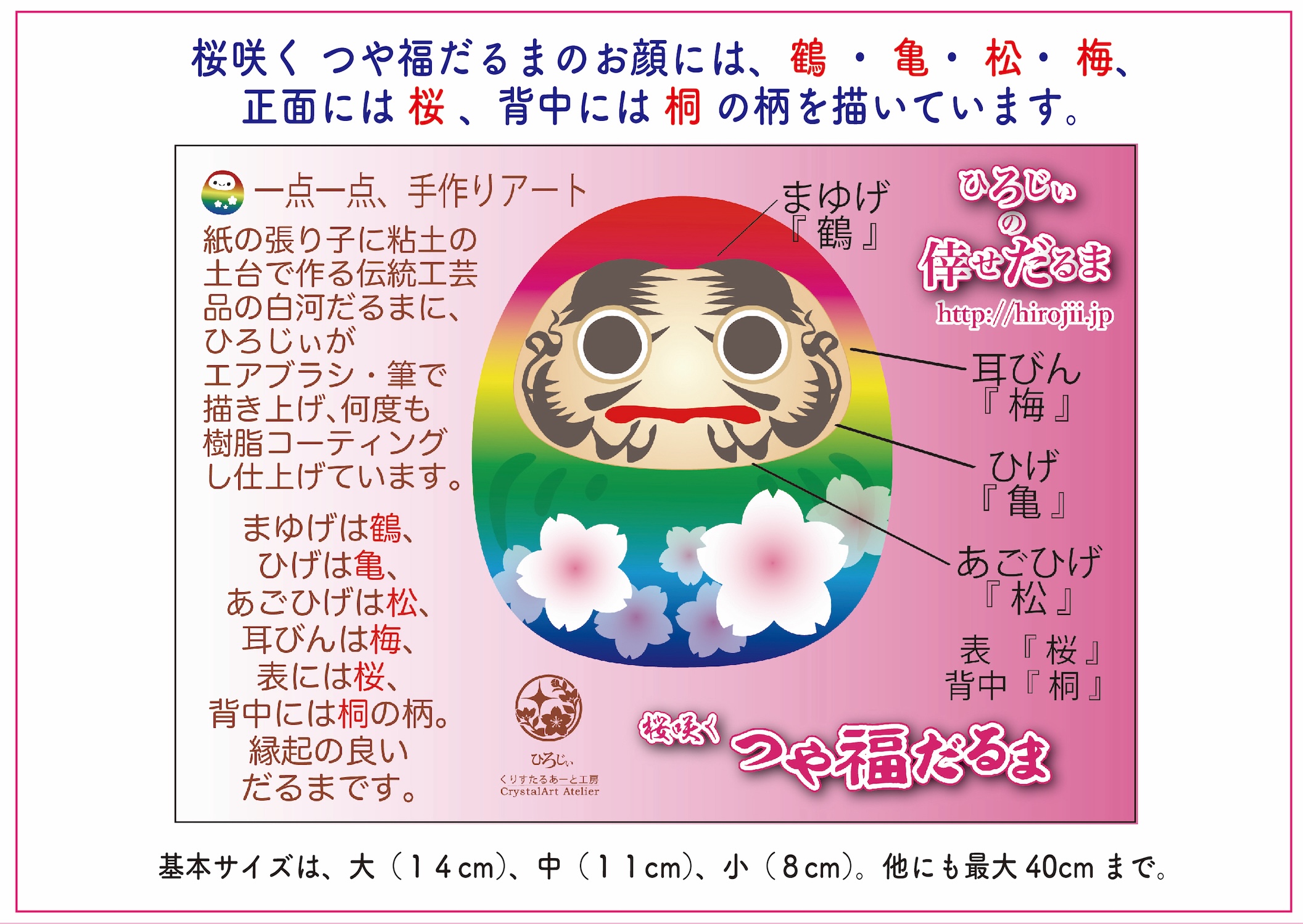 桜咲く つや福だるまは伝統工芸品の白河だるまに“くりすたるあーと”を施した特別品。