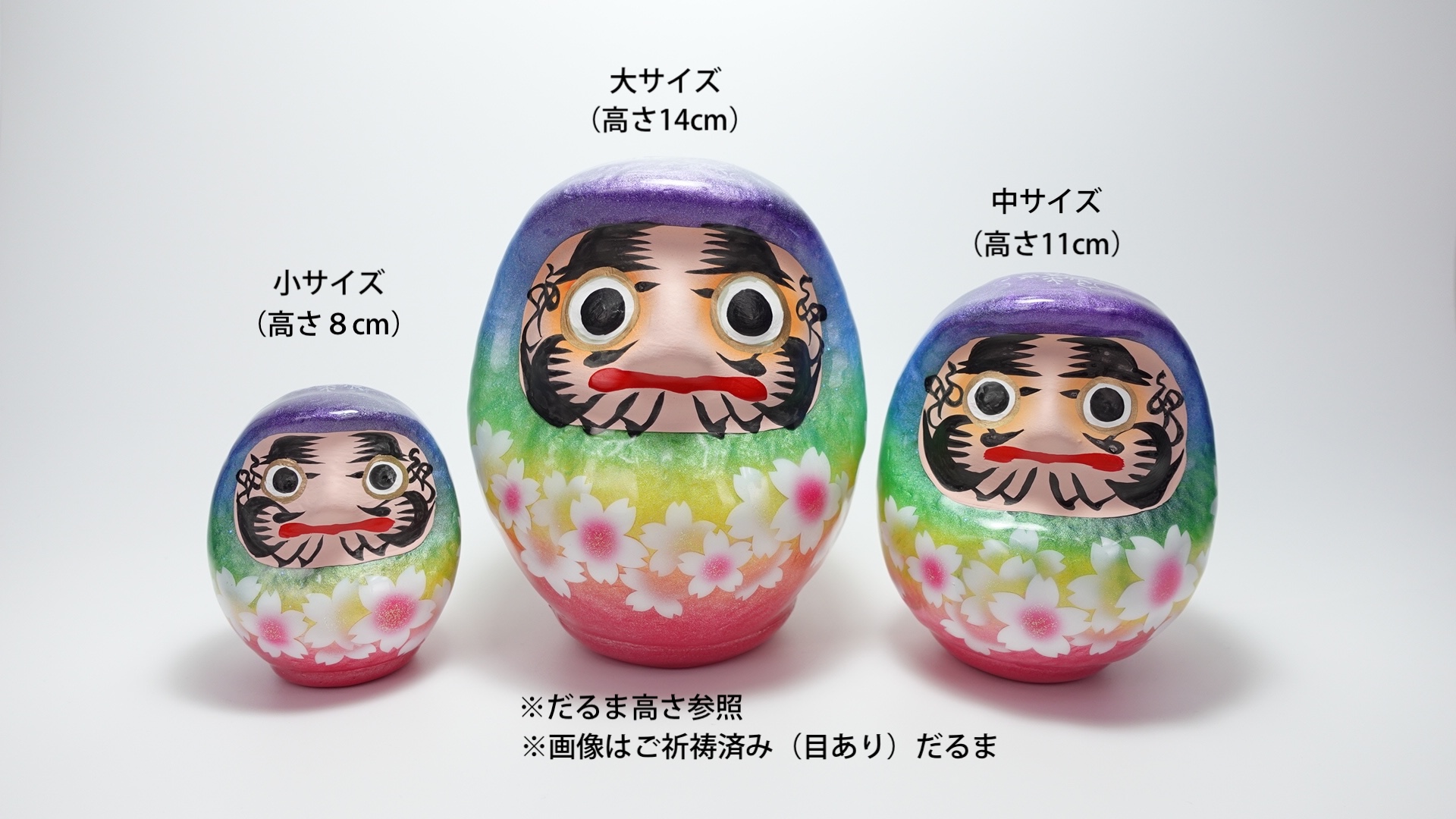 桜咲く つや福だるま 祈祷済み 中サイズ(レインボー系4種類)