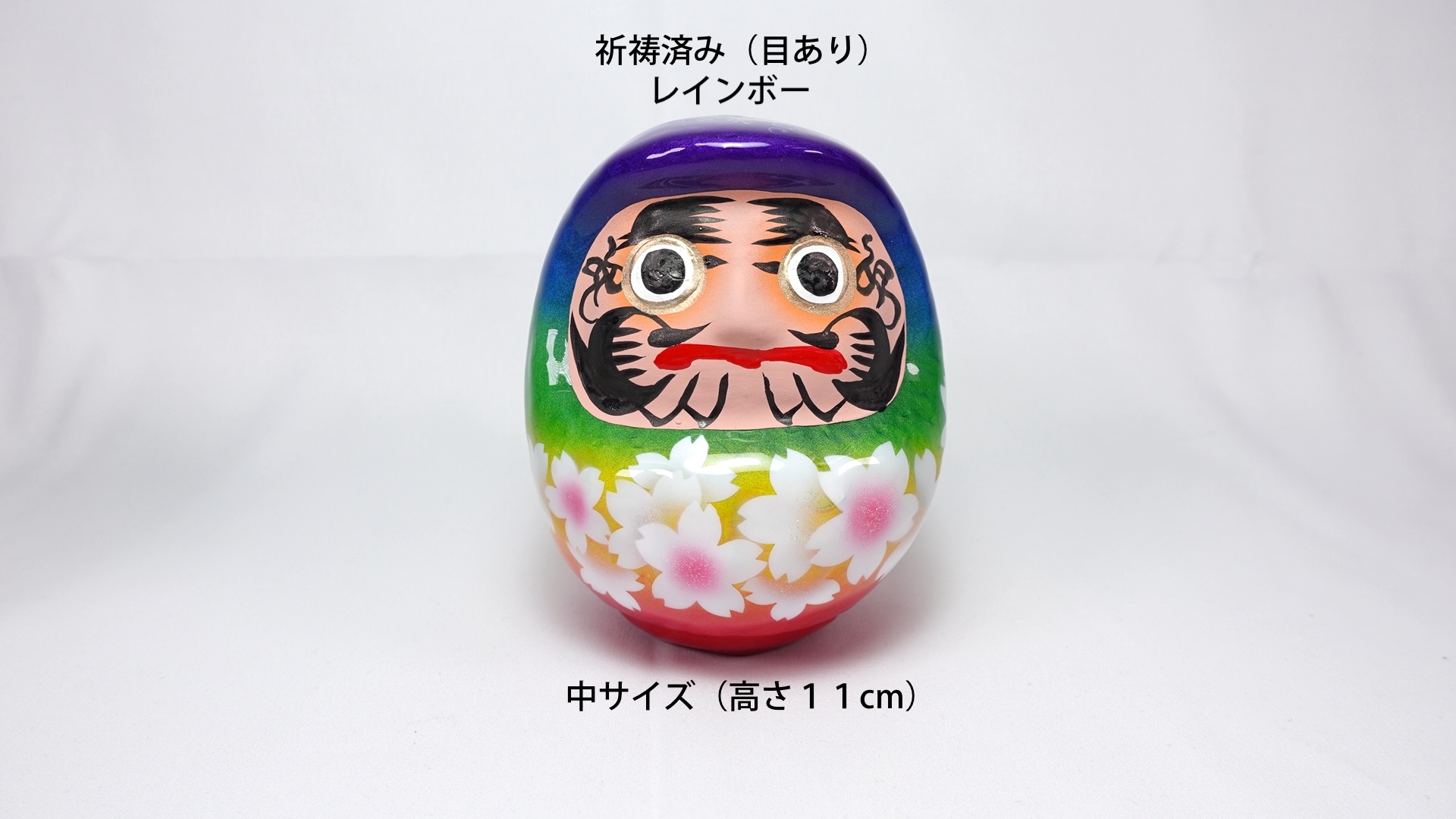 桜咲く つや福だるま 祈祷済み 中サイズ(レインボー系4種類)