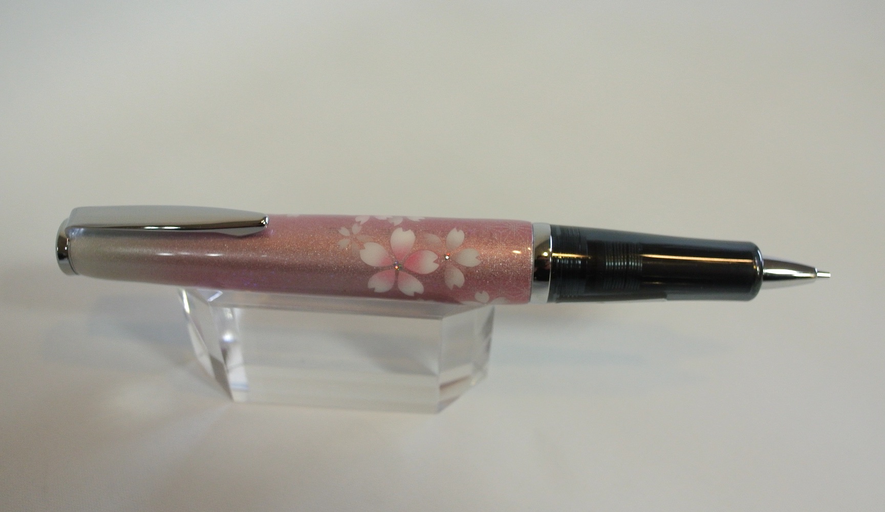スモーキーピンクのベースはシルバーががかったグラデーションが綺麗です。 描いた桜が浮かぶようで、満開の桜を眺めているようです。 ひろじぃシャープペンシルは、パイロット製タイムライン・シャープペンシルをベースにアート・コーティングしています。 誰も持っていないシャープペンシル! 一つ一つ心を込めてアートしています。