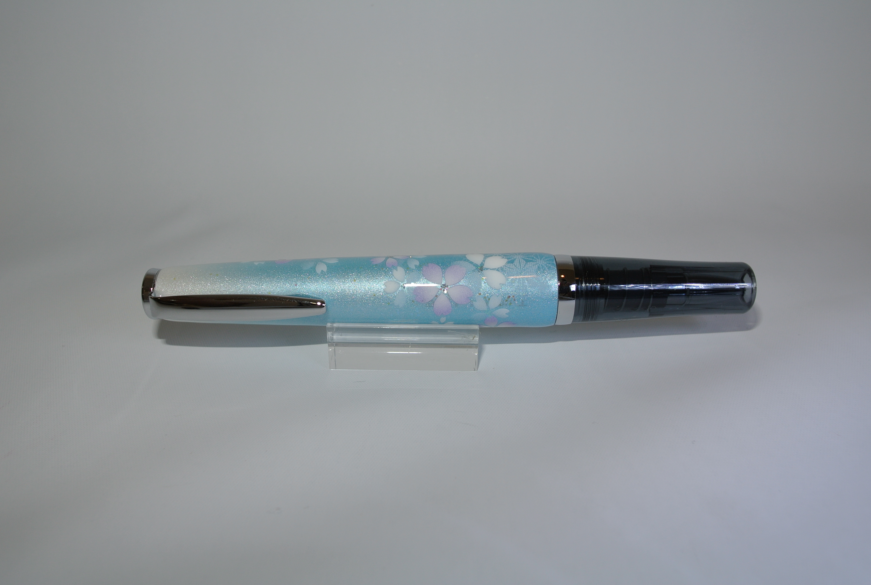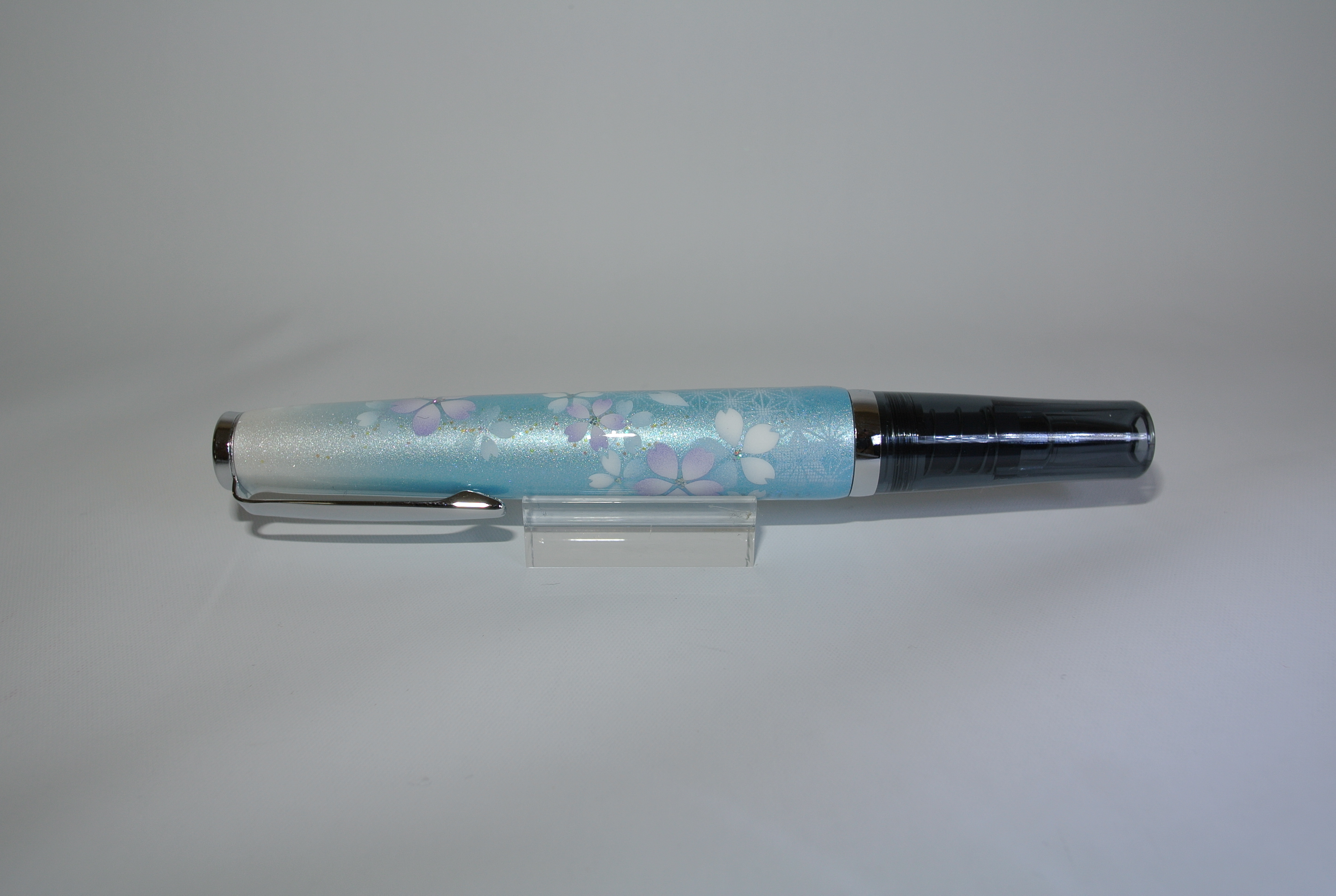 淡い色合いのパステルブルー、男女問わず素敵です。 優しく桜が流れ、麻の葉の柄がそっと描かれています。 ひろじぃボールペンは、パイロット製タイムラインをベースにアート・コーティングしています。 もちやすく書き味も良いので手放せません。 他の誰も持っていない素敵なボールペン! 一つ一つ心を込めてアートしています。