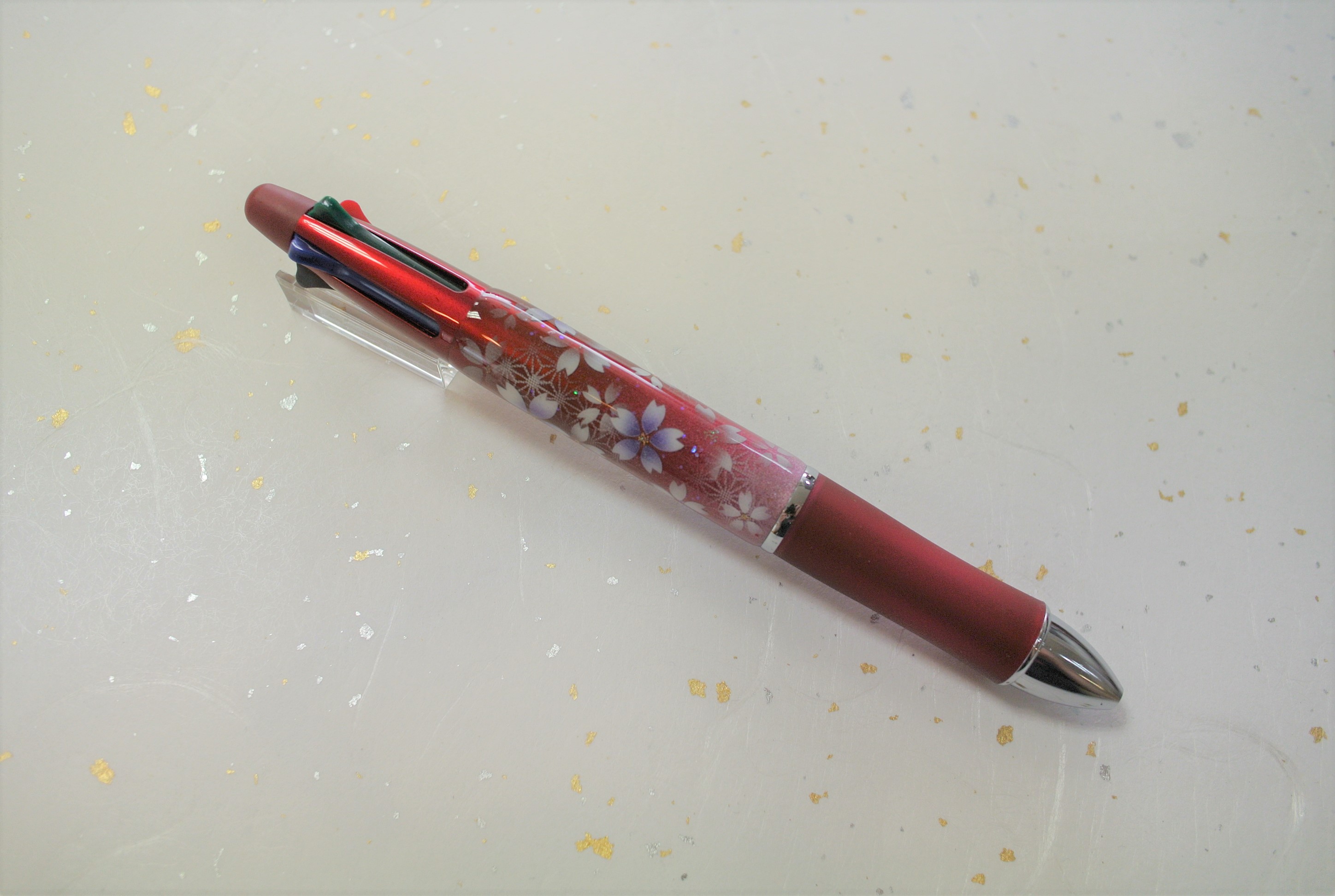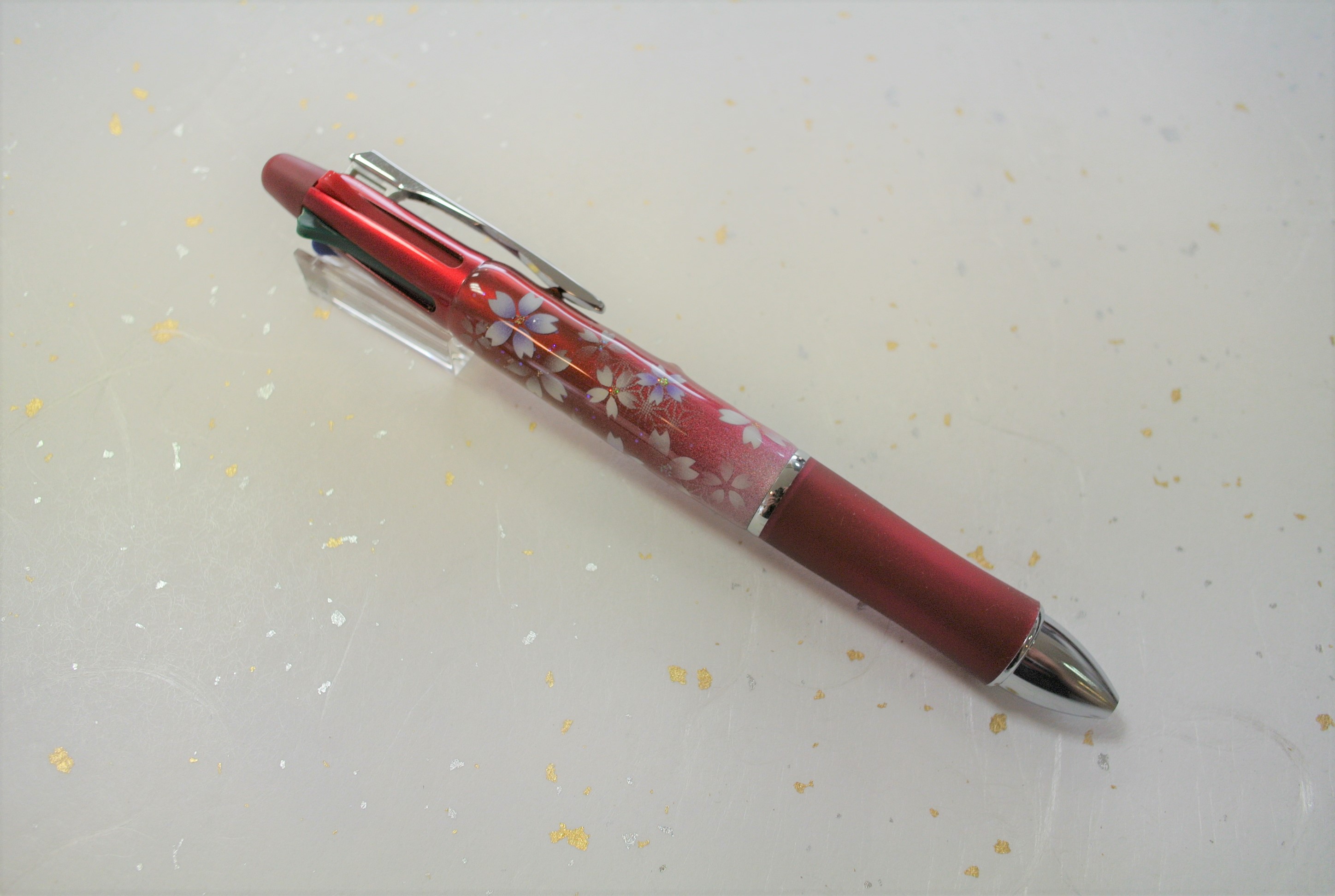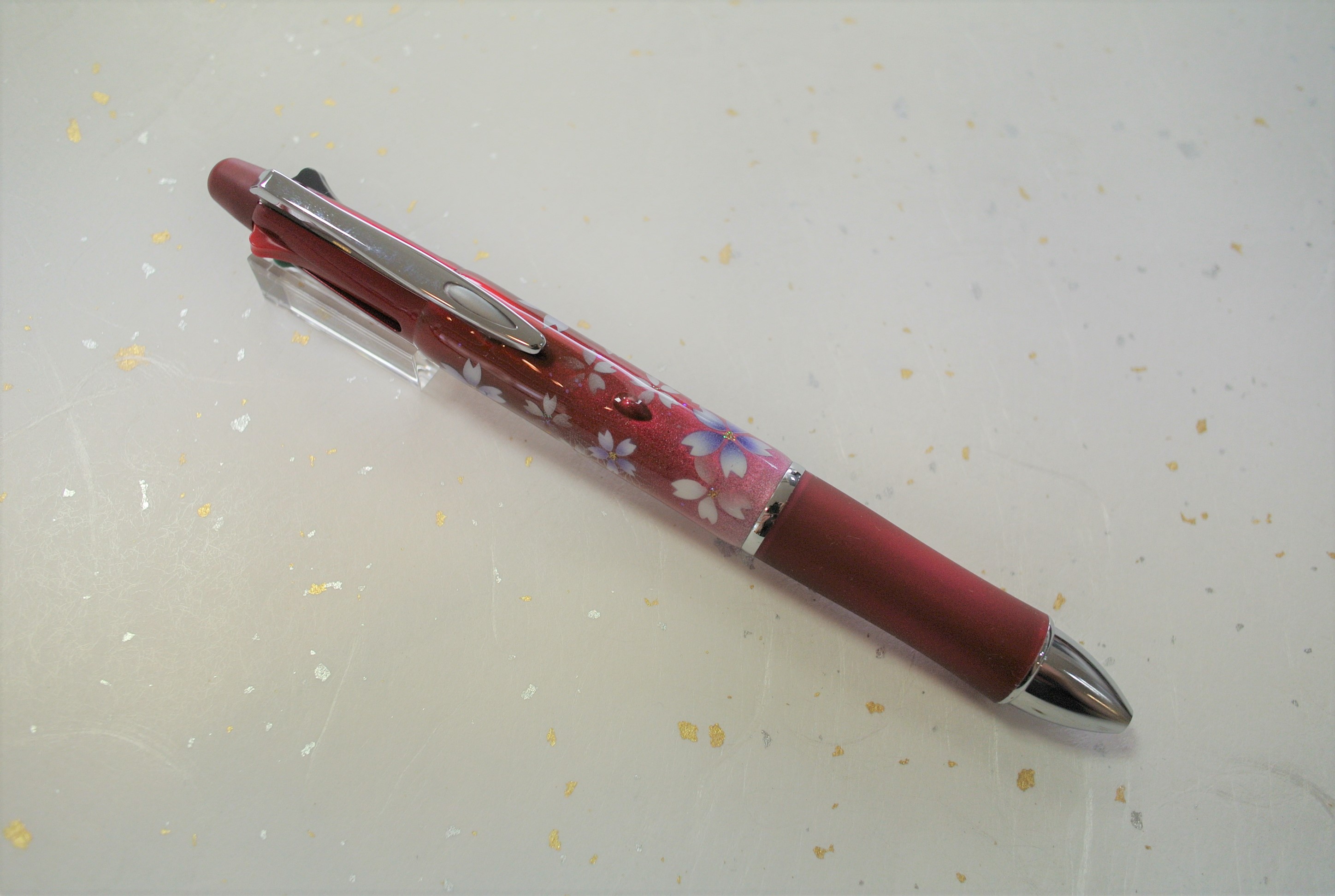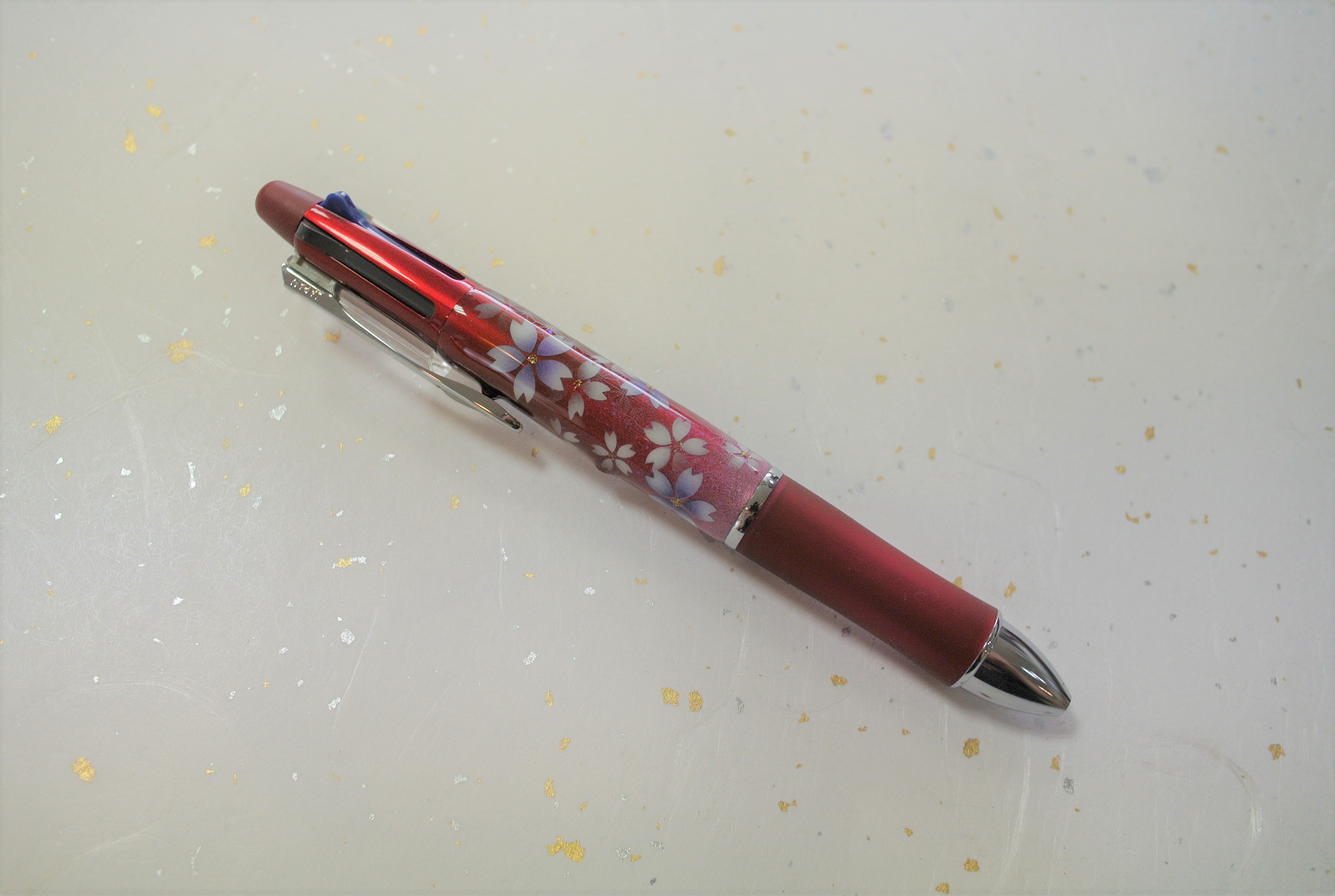 PILOT製 ボールペンDr.GRIP4+1 へのアート。お花は桜、花色は紫色。