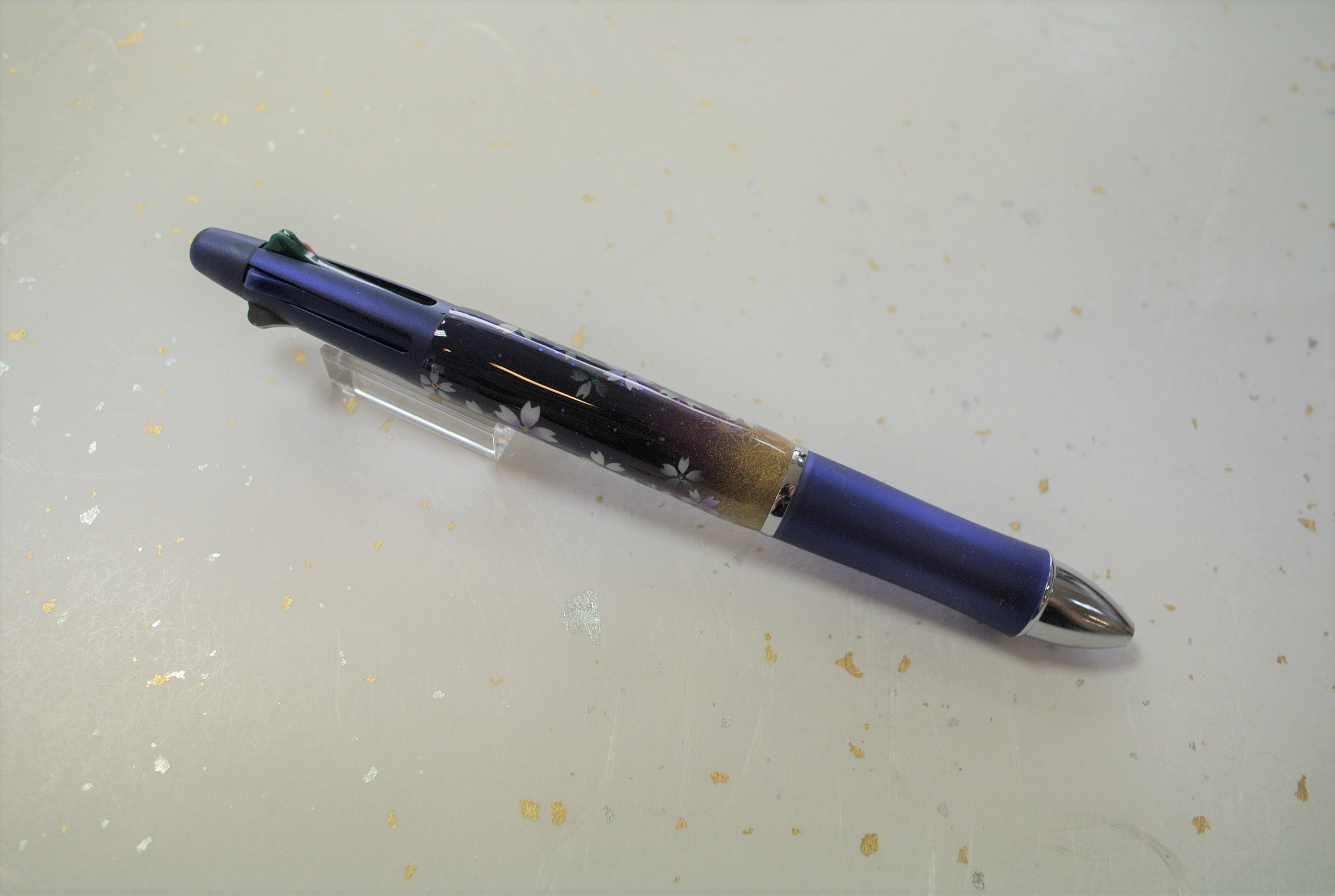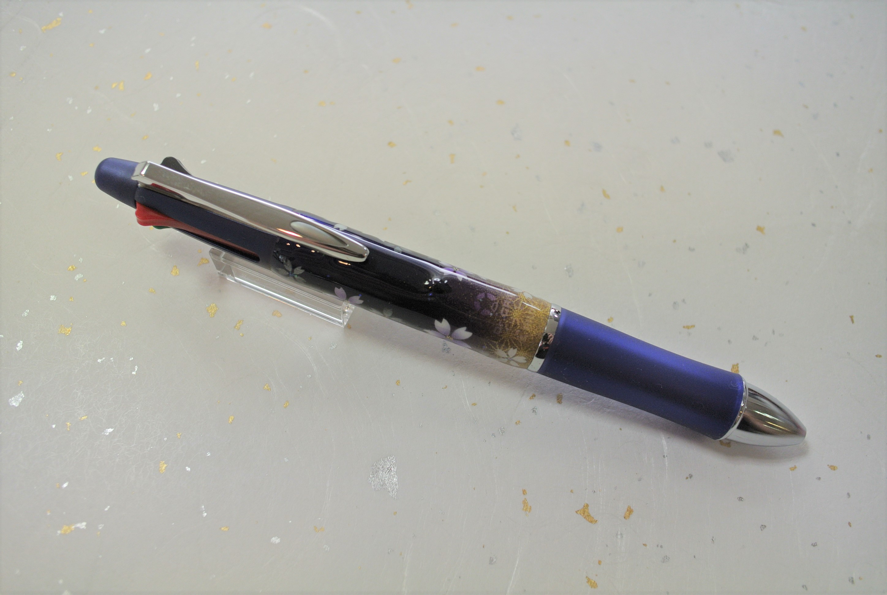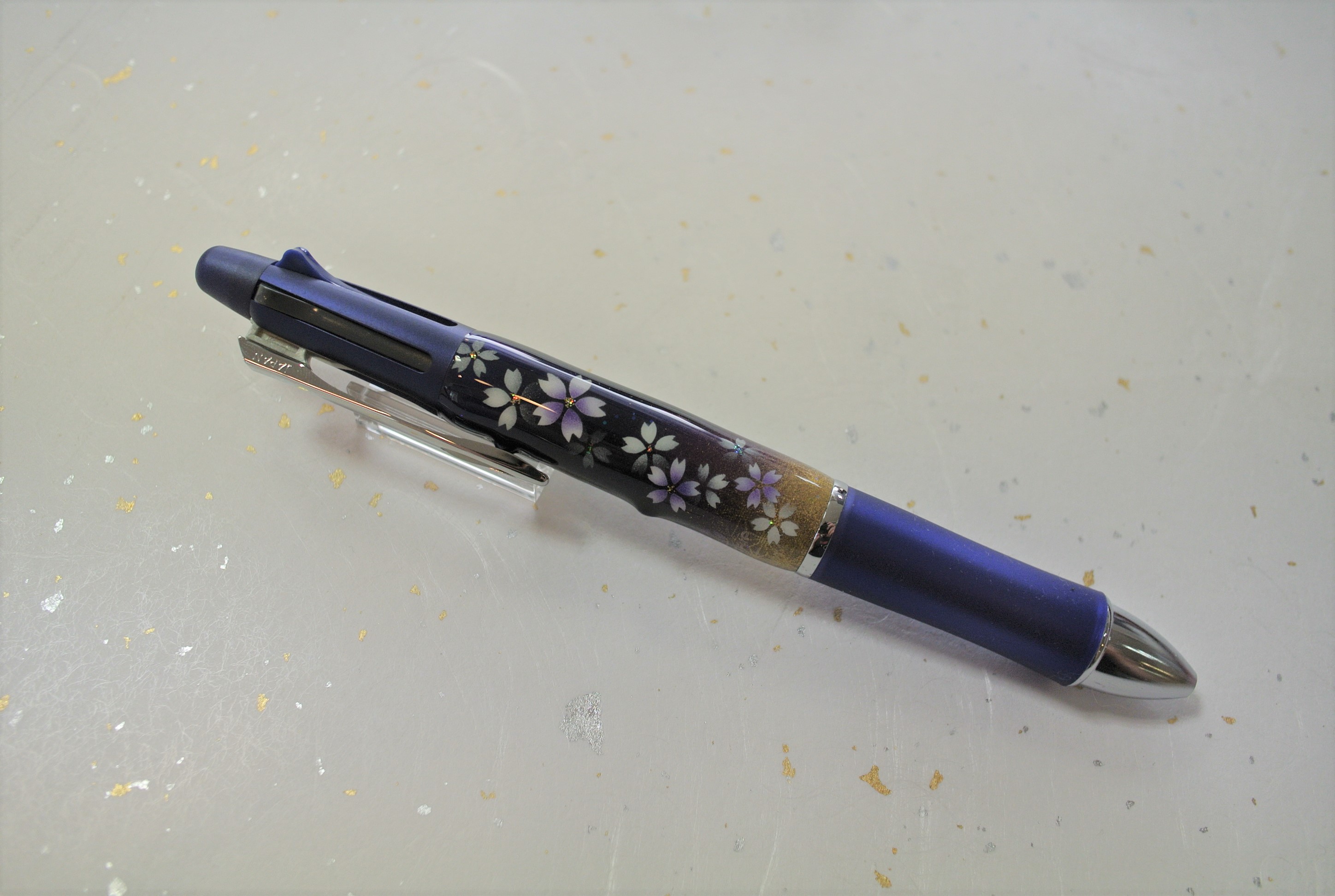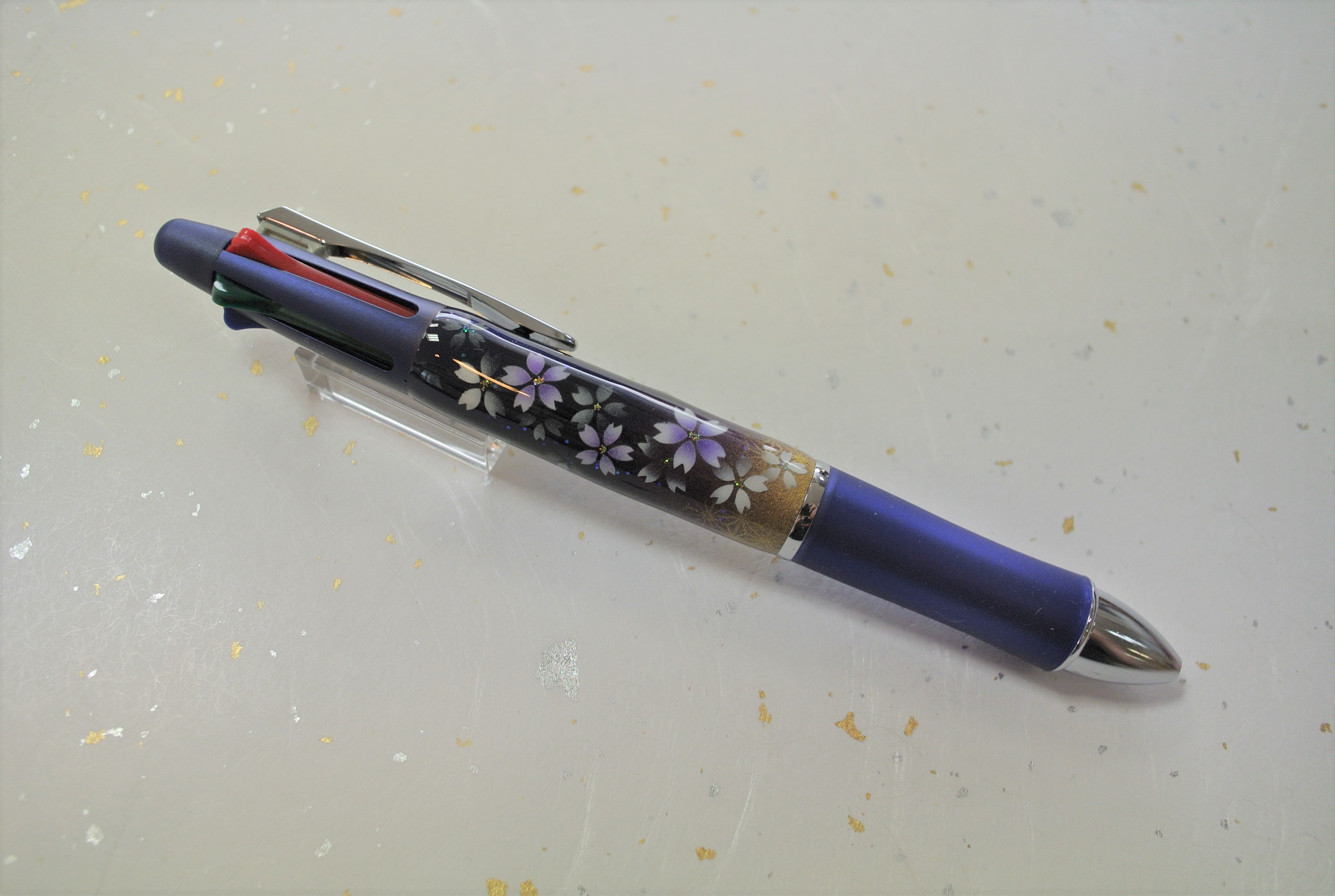 PILOT製 ボールペンDr.GRIP4+1 へのアート。お花は桜、花色は紫色。