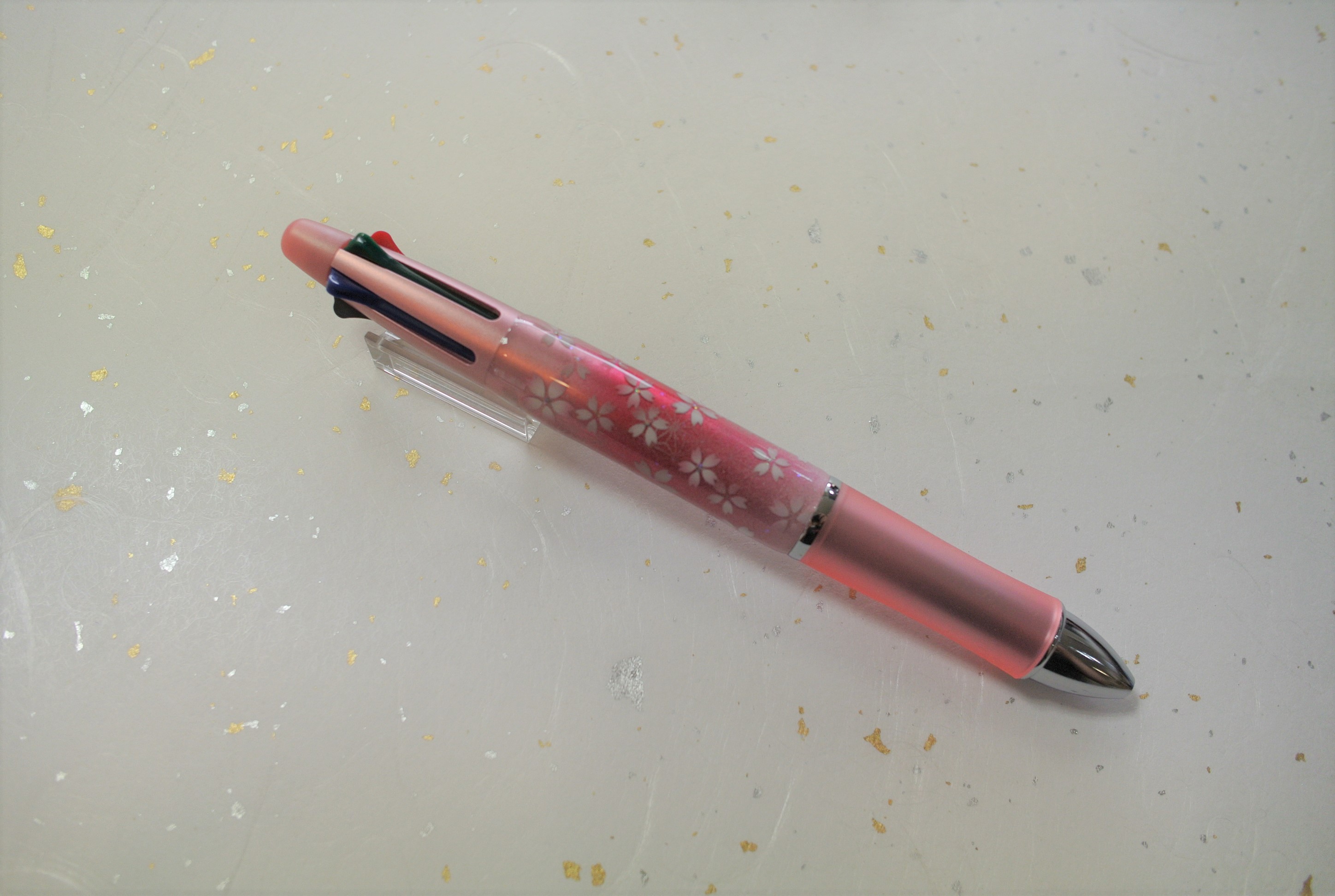 PILOT製 ボールペンDr.GRIP4+1 へのアート。お花は桜、花色はピンク色。