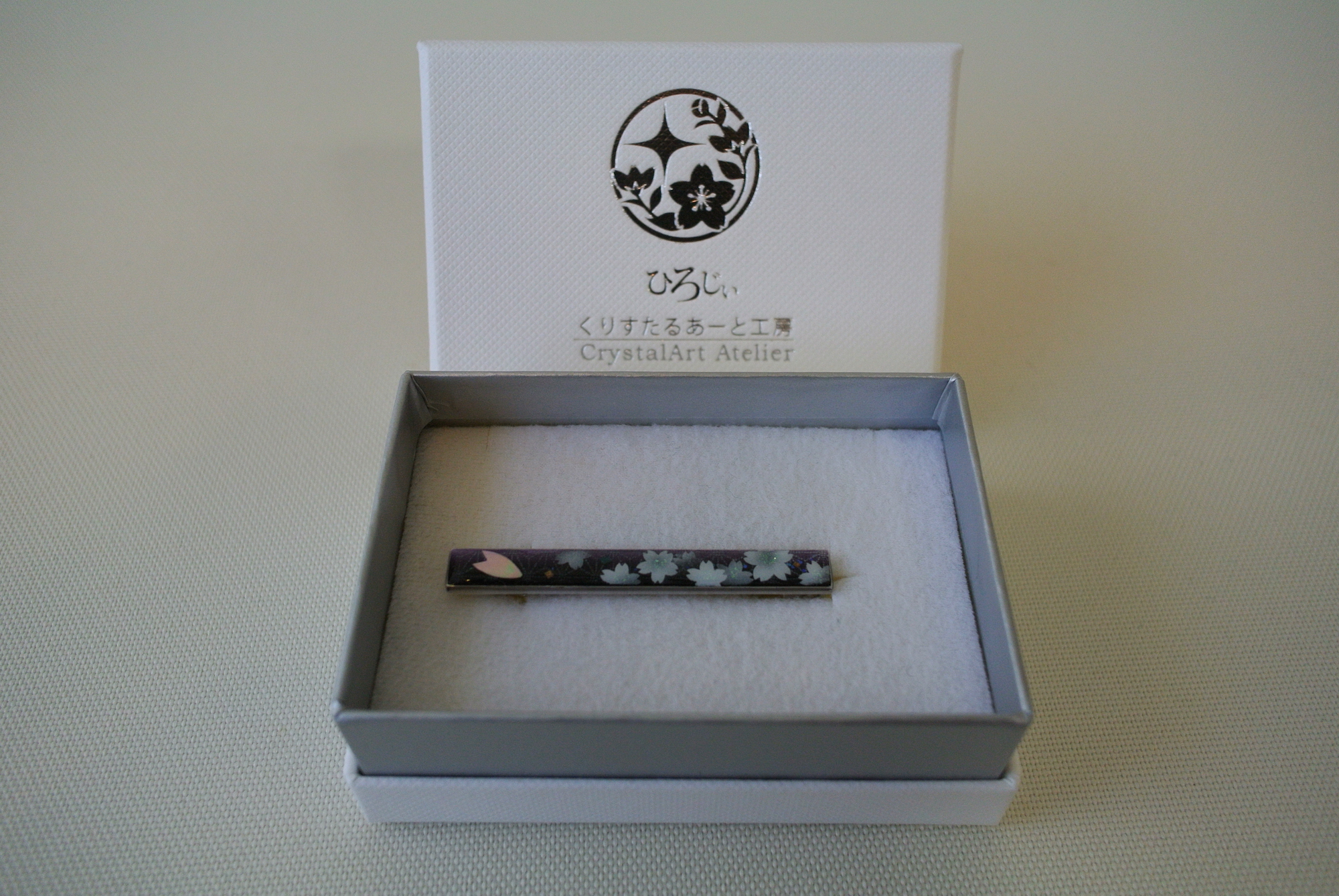 紫のカラーの強い個性を桜花がやわらげ、さりげなく個性の光るアイテムです。