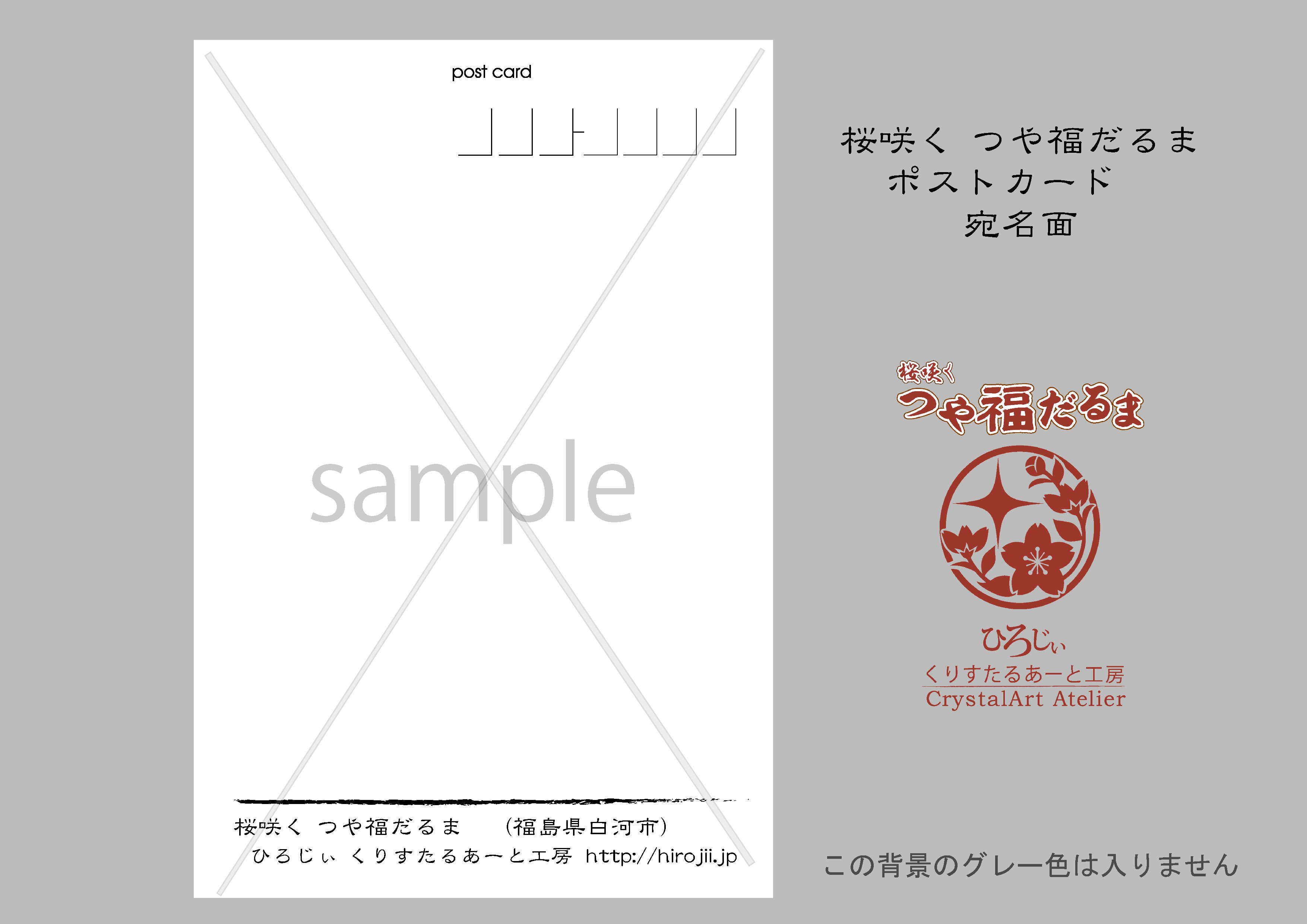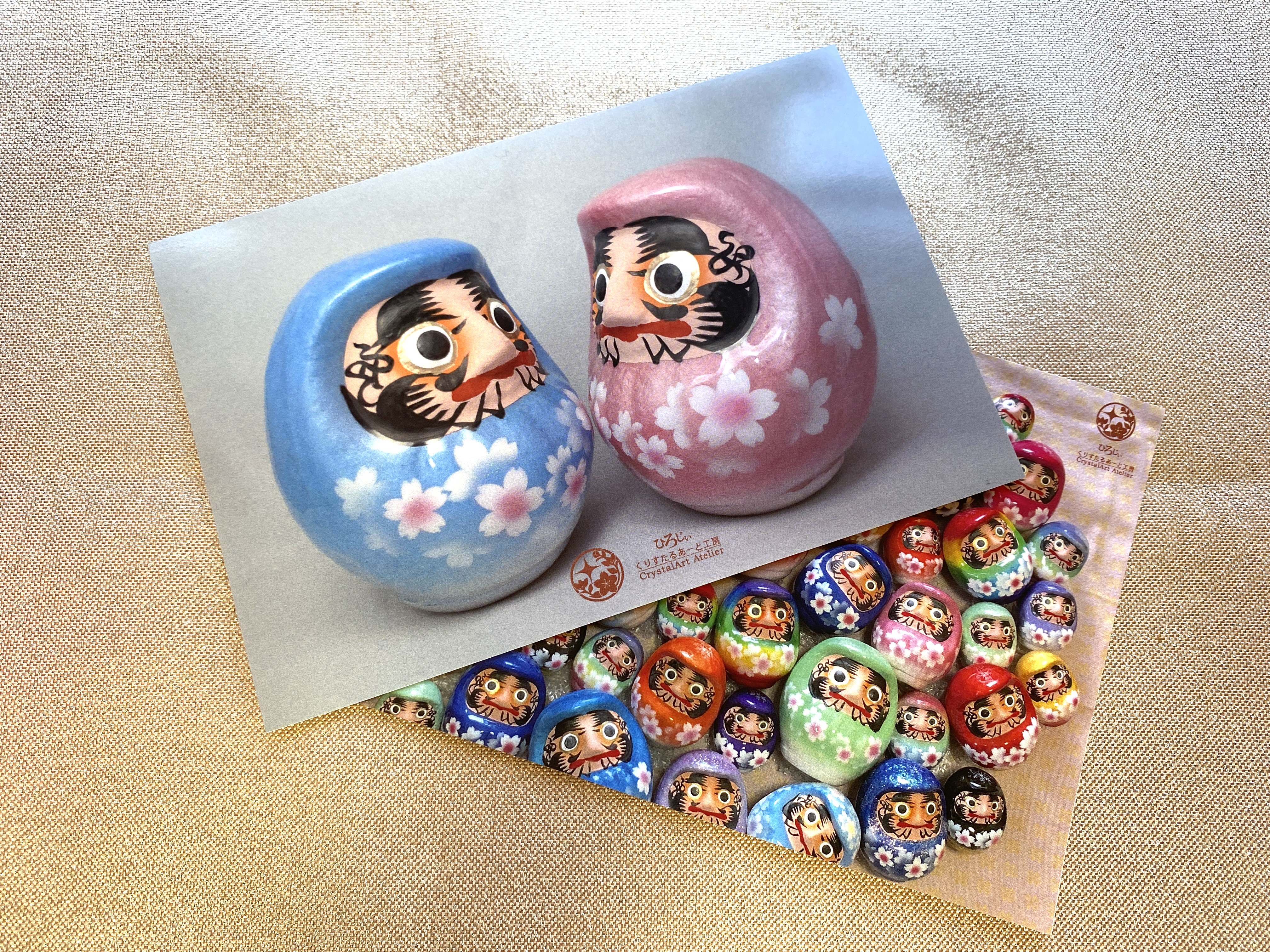 淡いパステルピンクとパステルブルーのつや福だるまさんが並んだ、癒し系ポストカード。