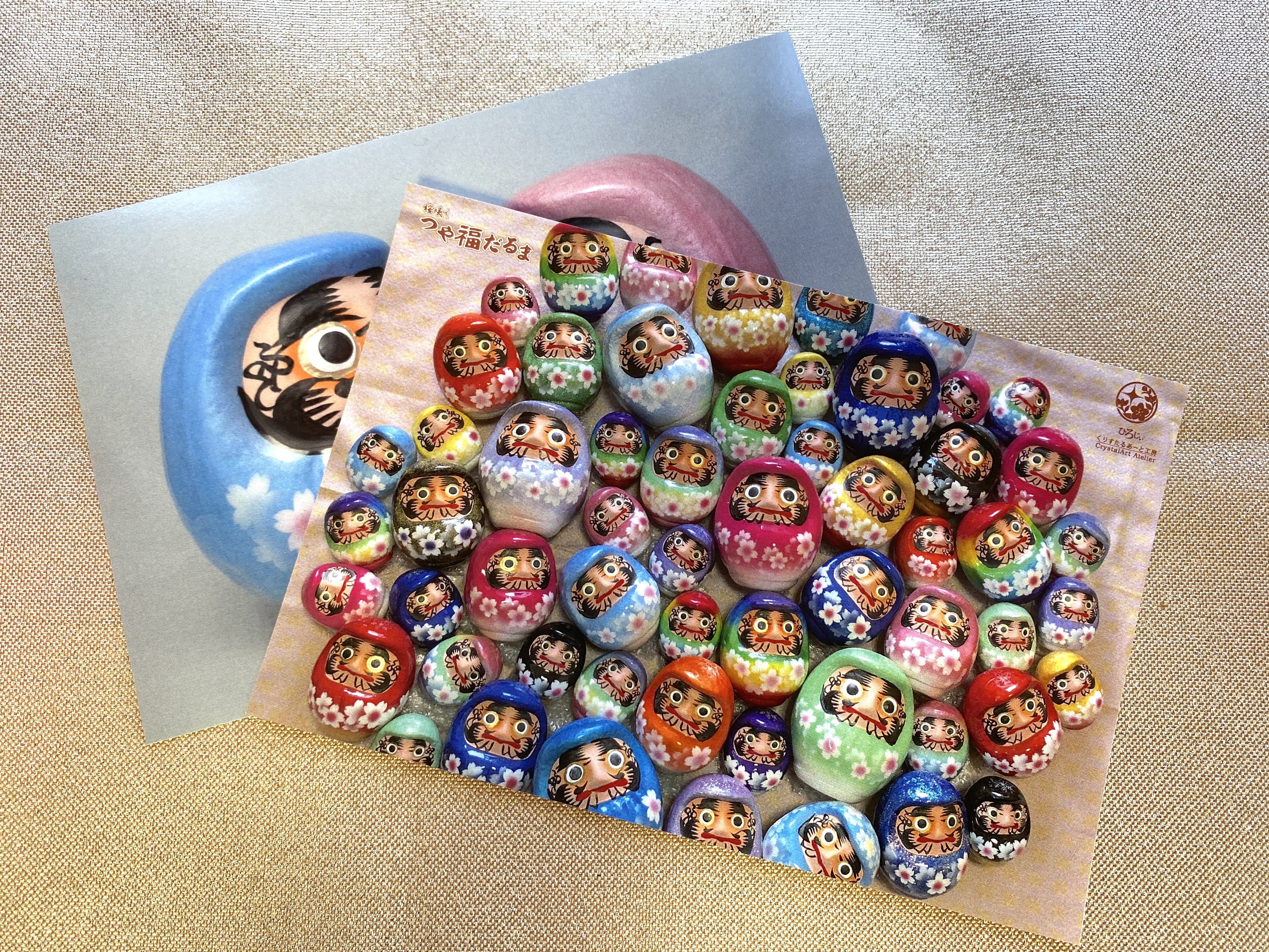 色とりどりのだるまさんがいっぱいの、元気の出るポストカード。