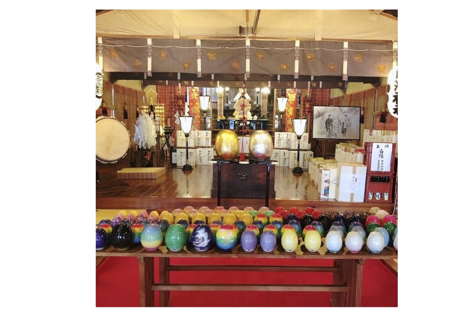 桜咲く つや福だるまは伝統工芸品の白河だるまに“くりすたるあーと”を施した特別品。
