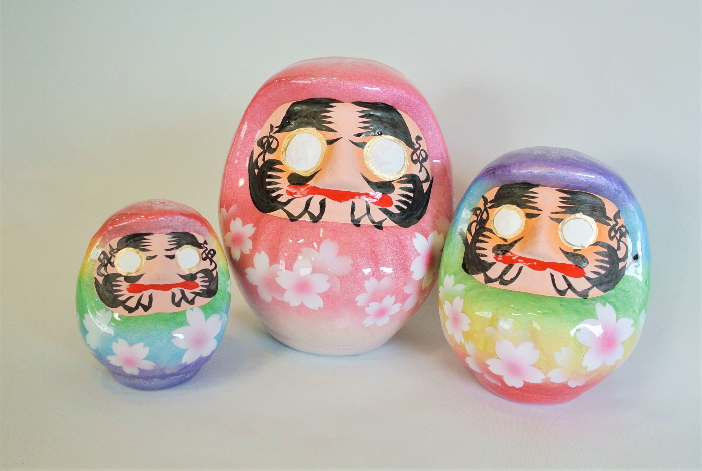 桜咲く つや福だるまは伝統工芸品の白河だるまに“くりすたるあーと”を施した特別品。