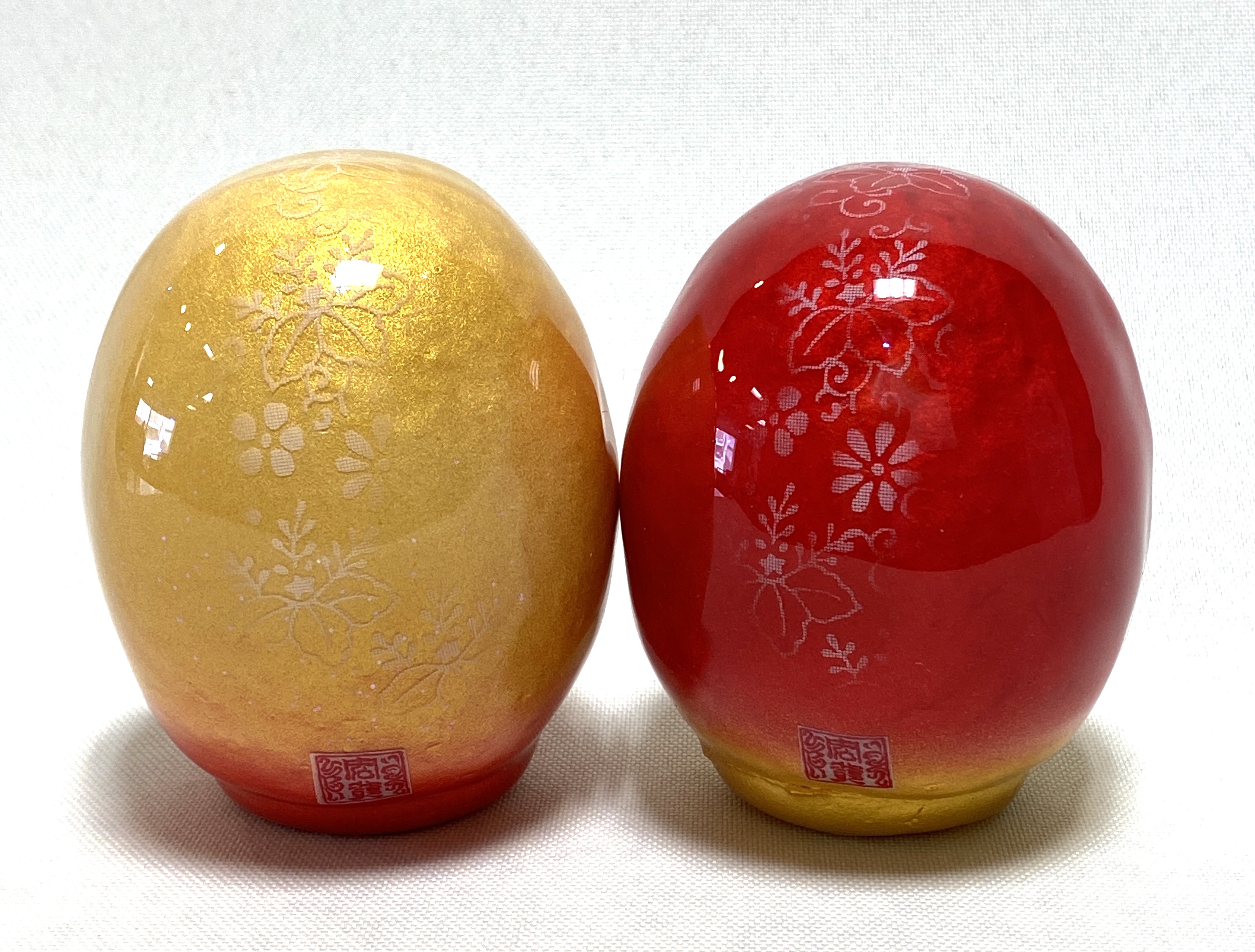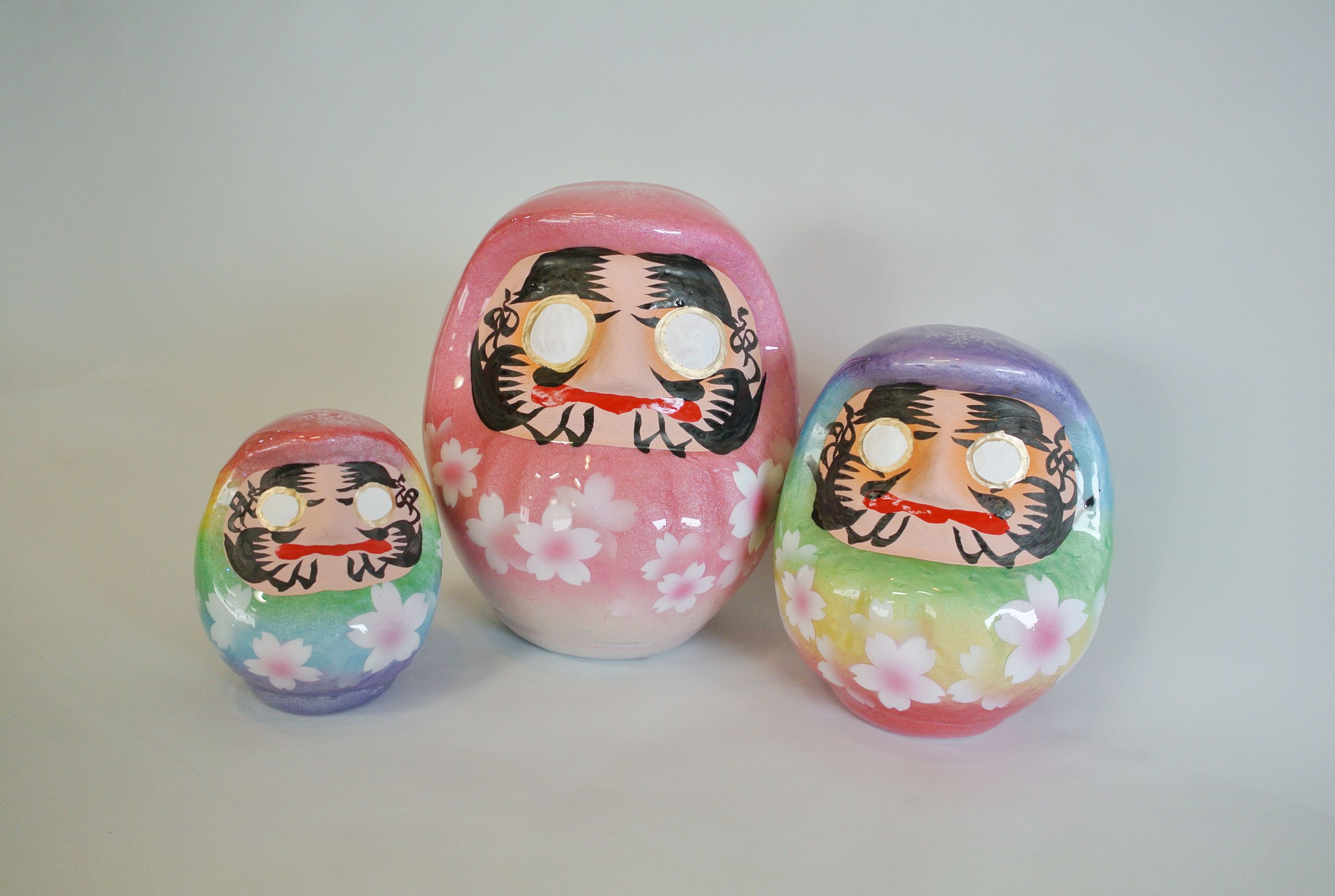 桜咲く つや福だるまは伝統工芸品の白河だるまに“くりすたるあーと”を施した特別品。