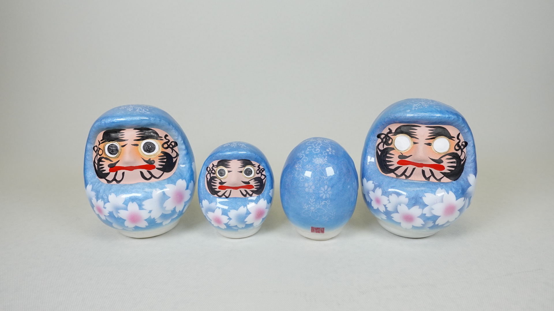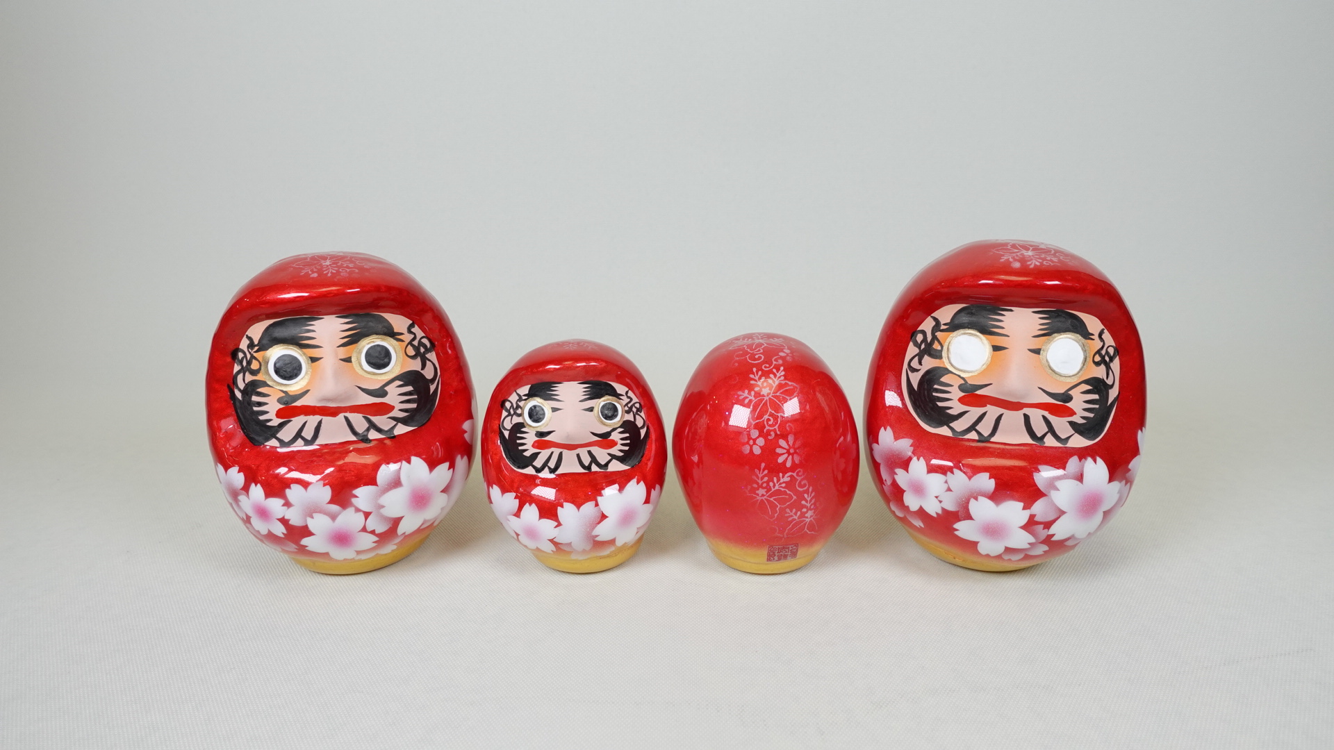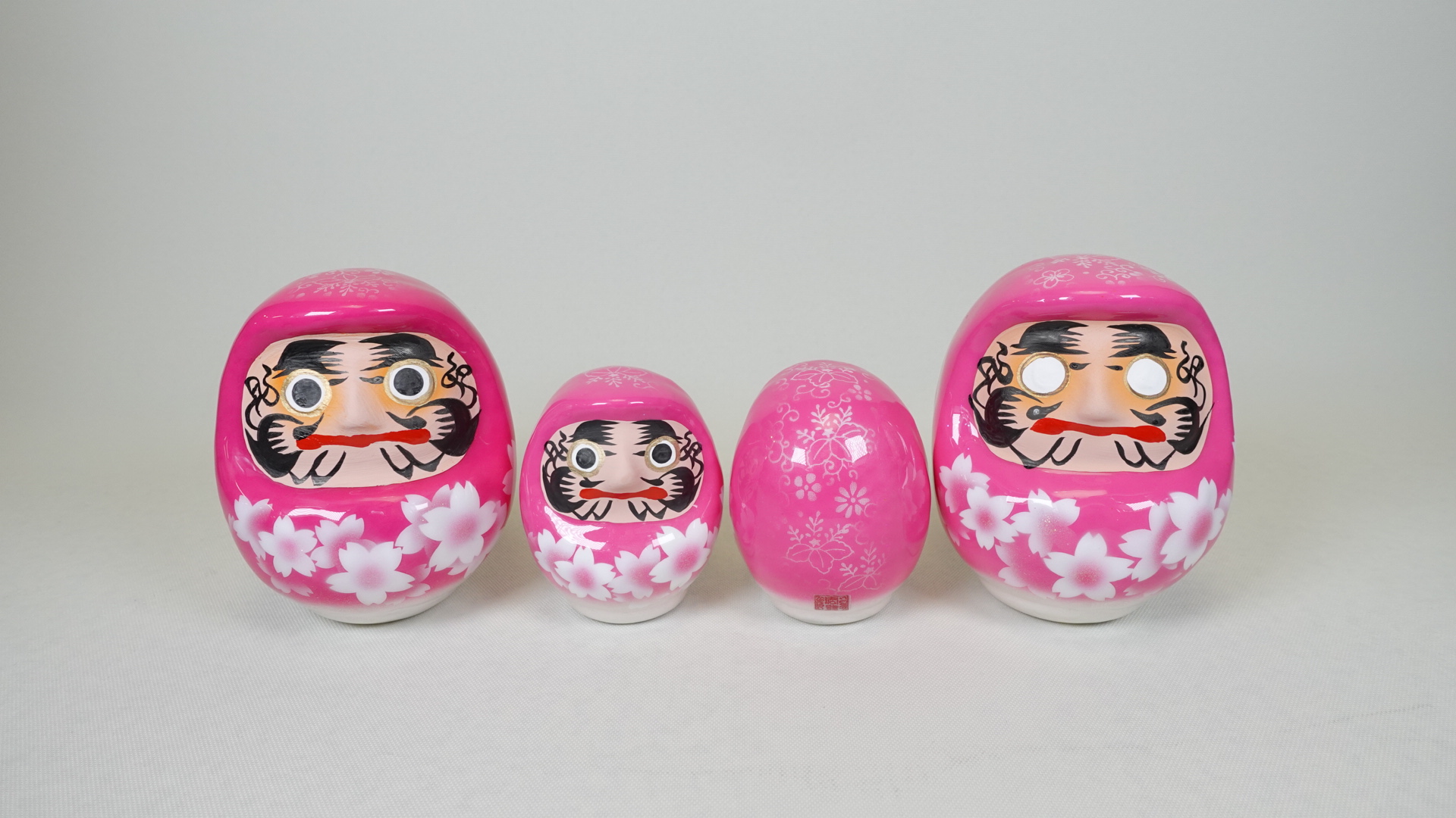桜咲く つや福だるまは伝統工芸品の白河だるまに“くりすたるあーと”を施した特別品。