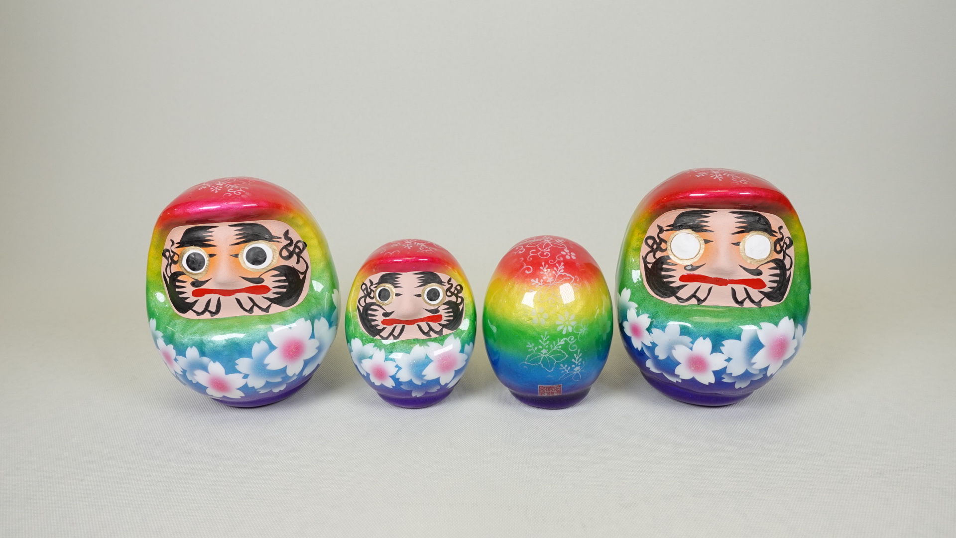桜咲く つや福だるま 祈祷済み 中サイズ(レインボー系4種類)