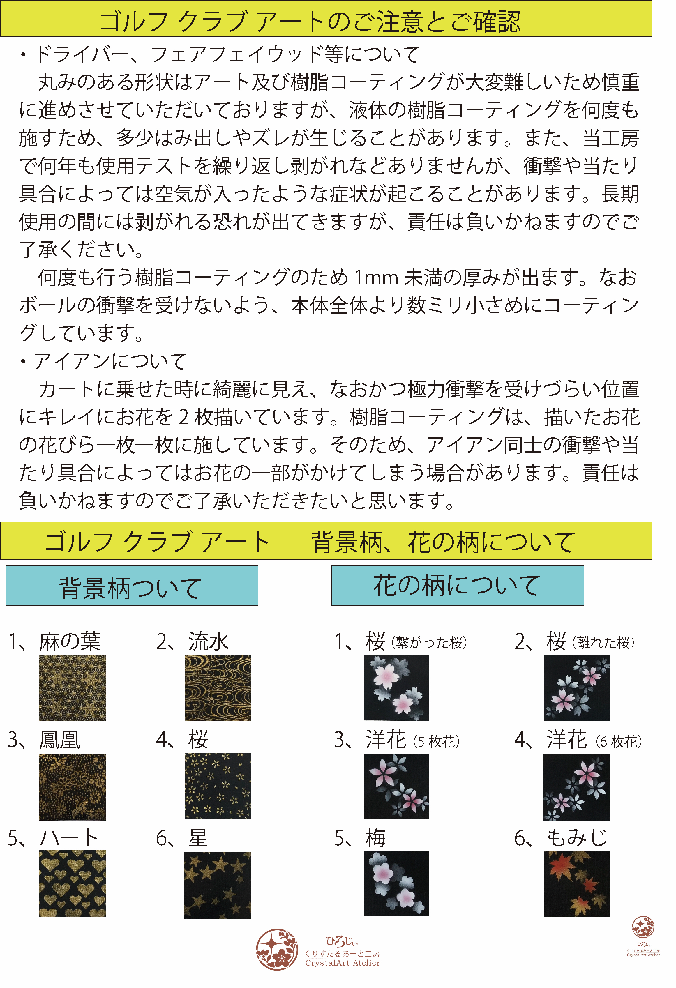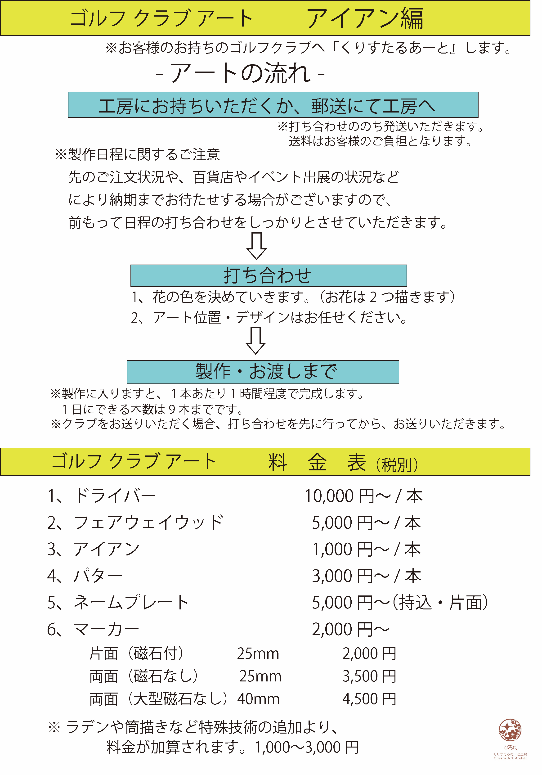 ゴルフマーカーやバッグのネームタグ、ゴルフクラブなどへのアート。